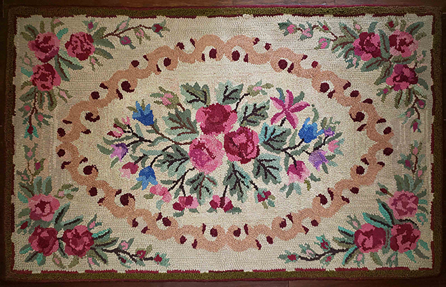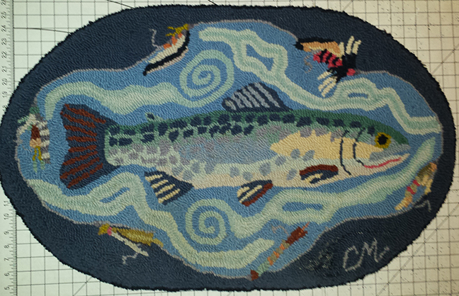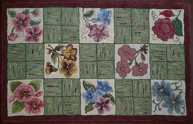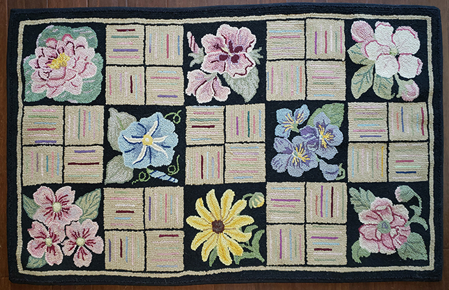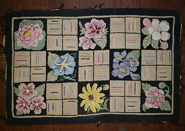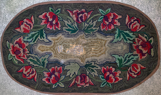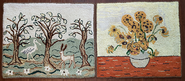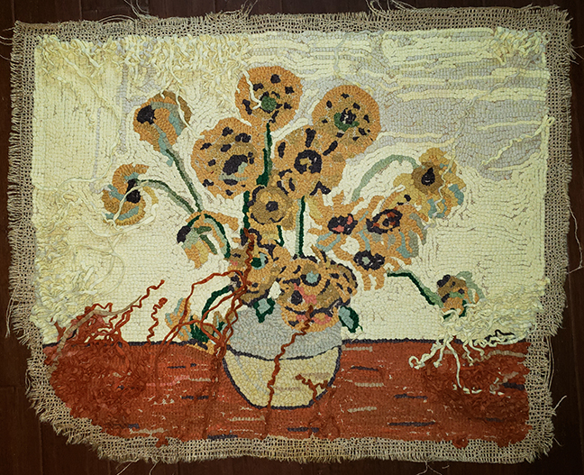 This is the companion rug to the Van Gogh rug. We don’t know who hooked these rugs, perhaps they were done by the same person, or perhaps the owner just saw that they looked nice together.