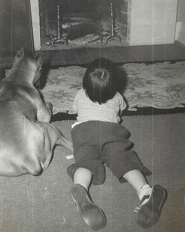 One of my favorite things about repairing rugs is the stories people tell. Here you see the owner of this rug when she was a little girl in the late 1940’s, relaxing on this very rug in front of the fireplace with the family dog, Cindy. Doesn’t she remind you of Scout from To Kill A Mockingbird?