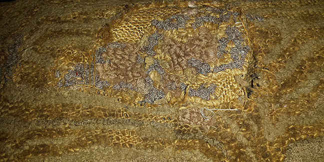 If there is damage to the backing of the rug, that’s more serious. I’ve come across many efforts to stop the damage, including sewing the hole closed, using glue or latex, or just sewing fabric into the back of the rug to cover the hole. Unfortunately, these remedial efforts only put more pressure on the already weakened fibers. They tend to make the damage get worse faster.