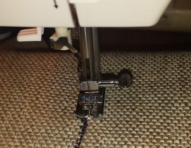 On my sewing machine, I zig-zagged a couple of times around on the sharpie pen line that I drew (above).