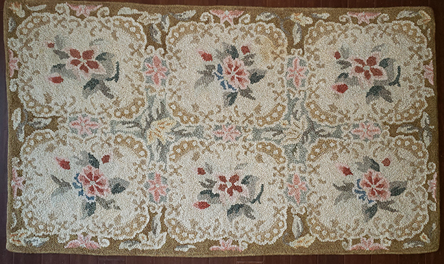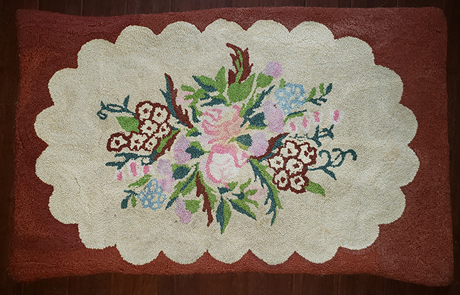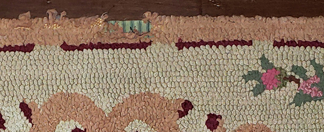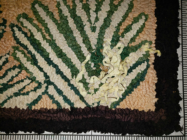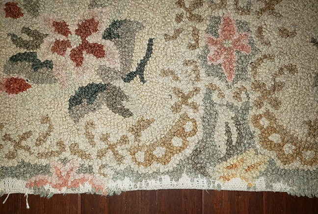 They broke down the pricing structure by features (type of backing, amount of detail, hand-dyeing, etc.) for new hooked rugs. Of course, old hooked rugs have other elements to consider, such as provenance and condition. I believe collectors of hooked rugs take some wear and tear into account. However, if the damage to the rug is extensive, that can certainly bring down the value. That’s when it’s advantageous to do repairs. If your customer is aware of the actual value of the rug, they can consider that along with your repair quote. Advice from an antiques dealer can be helpful, if they have expertise with hooked rugs.