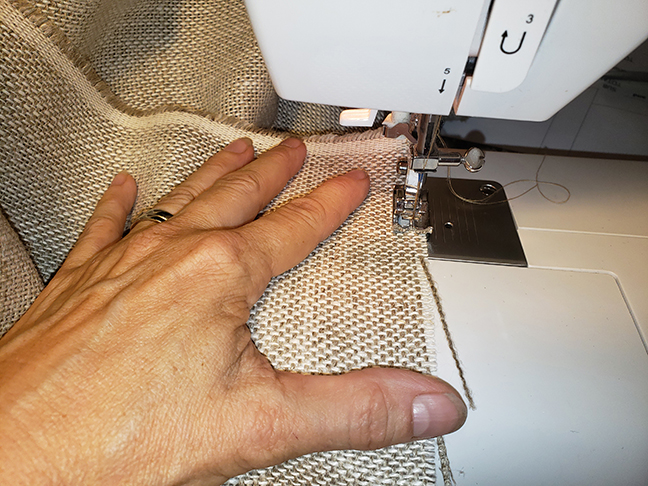 Usually, I would zig-zag the original burlap as well, but with a rug this large, I couldn’t get it up to my sewing machine without manhandling the rug, which wasn’t advisable. I just made sure my hand sewing was thorough.