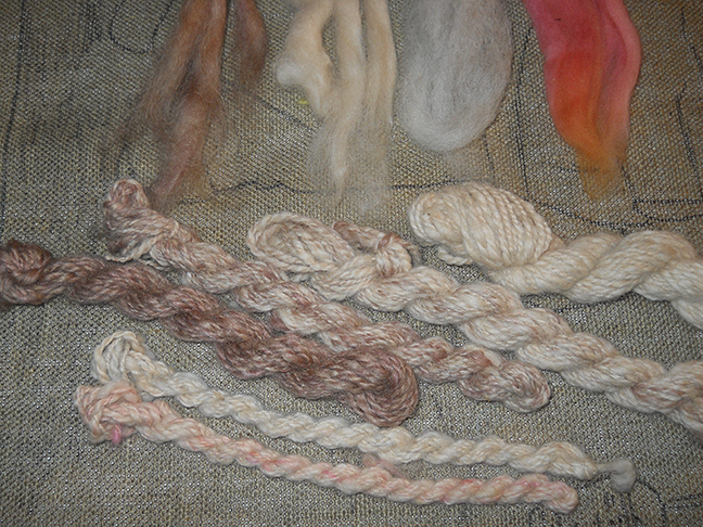 Then I blended different colors of wool and spun up the colors for the grass. Sometimes, you can get a better match for the original rug than you can by just dyeing new wool or yarn.