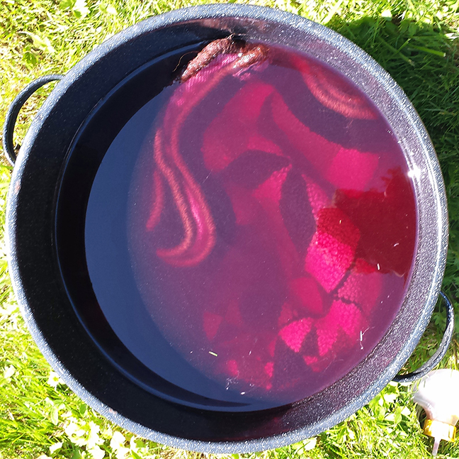 I am no scientist when it comes to dyeing. For me, it’s more like a serendipitous surprise what comes out of my dyepot. I don’t measure the dye or the water in the dyebath, I don’t check the temperature, I don’t fiddle