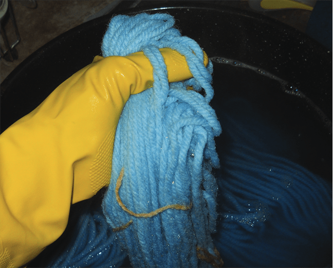 Rinsing the yarn: