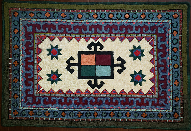 I came to rug hooking as a shepherd and hand spinner, searching for ways to use my ever-growing stash of yarn. There weren’t a lot of resources for yarn hookers in the Pacific Northwest at that time, except for a Claire Murray shop in Poulsbo, Washington. Heaven! Thirty-some years and over a hundred rugs later, I can hardly believe my luck, happily discovering that little shop.
