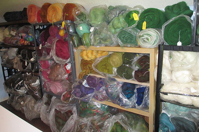 Dyed, carded wool, ready to be spun. With handspun yarn, you can blend colors or ply different colors together for subtle effects.