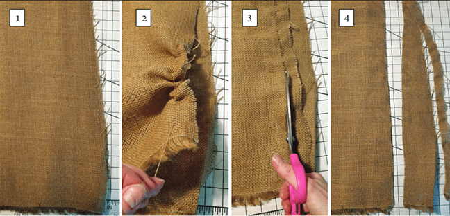 - Find a weft thread that is continuous from one edge of the fabric to the other edge. Pull the thread all the way out.