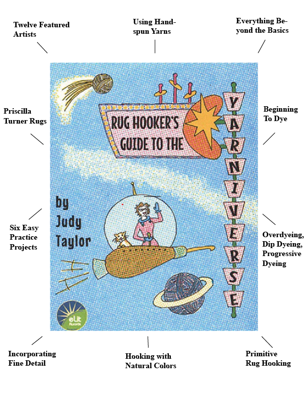 Rug Hooker’s Guide to the YARNIVERSE! is the perfect sequel to The NEW Joy of Hooking (With Yarn!). This book takes you beyond the basics of hooking with yarn, including hooking fine detail, realistic shading, primitive rug hooking, working with natural colors, the benefits of handspun yarn, with hundreds of pictures and illustrations, and dozens of templates to practice your new skills.