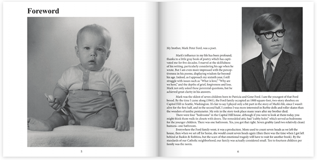 Judy Taylor, Mark’s sister and the author of the book, tells the story of her brother’s short life and their family, the circumstances in which he grew up, and how he began to express his creativity at a very young age. The examples of Mark’s poetry and general writings that the author presents are remarkable and moving. Considering the tender age at which Mark wrote the poetry, the sophistication and insight revealed in the work are astonishing.